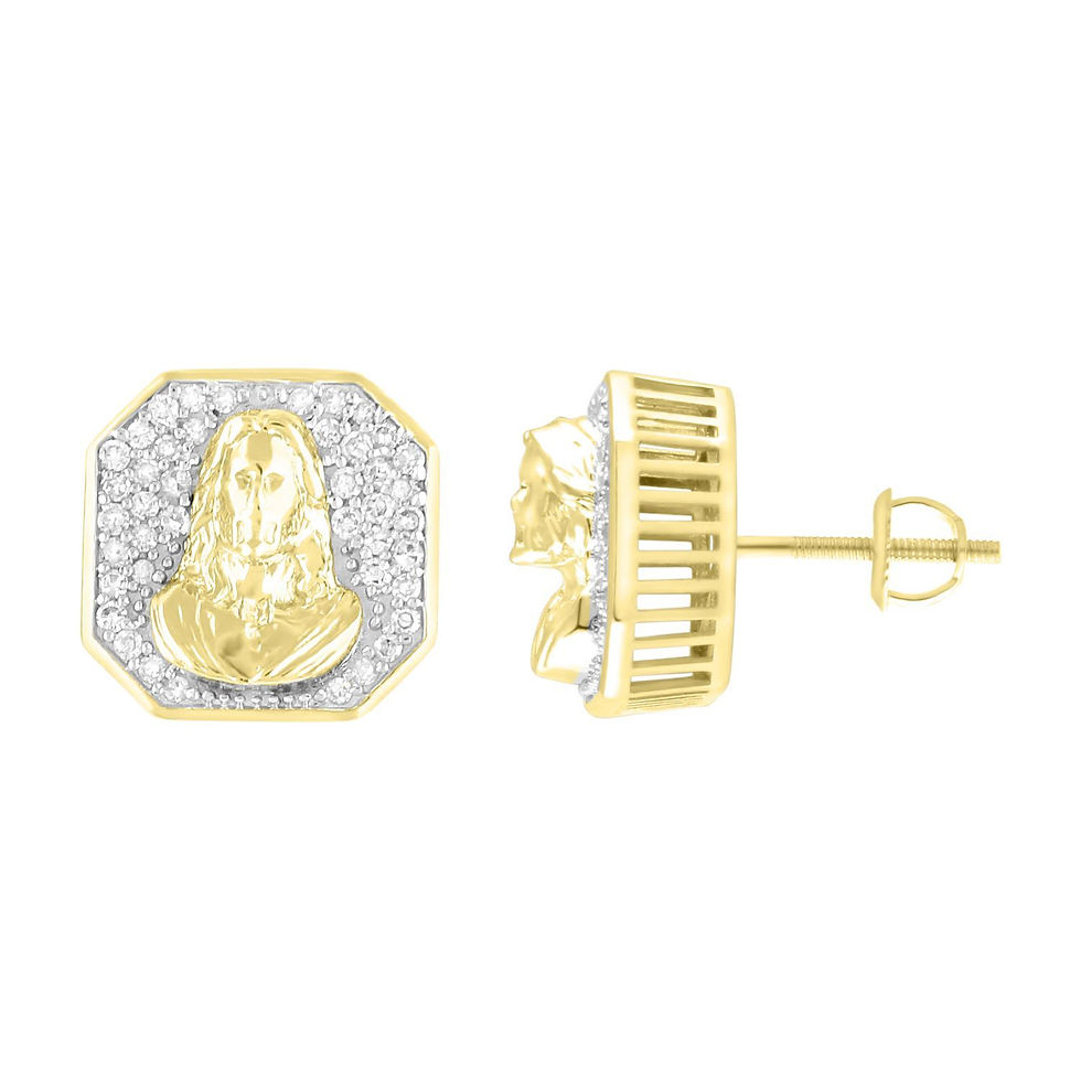 MEN'S JESUS STUD EARRINGS 1/4 CT ROUND DIAMOND 10K YELLOW GOLD