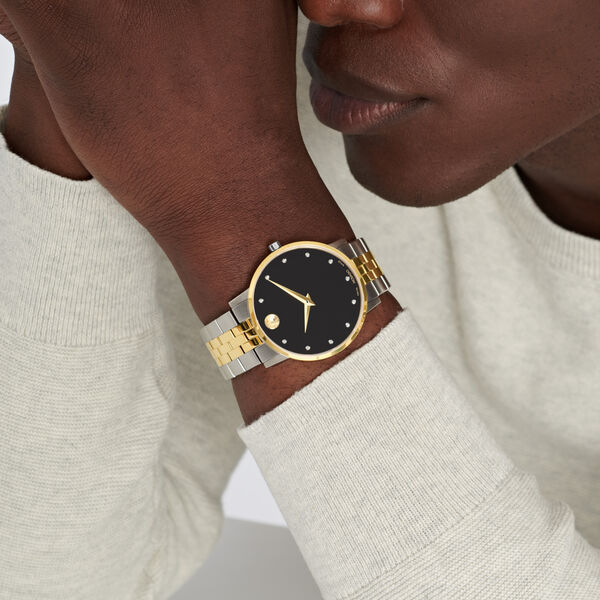 Movado Museum Classic Black Two-Tone Stainless Steel Diamond Men's Watch
